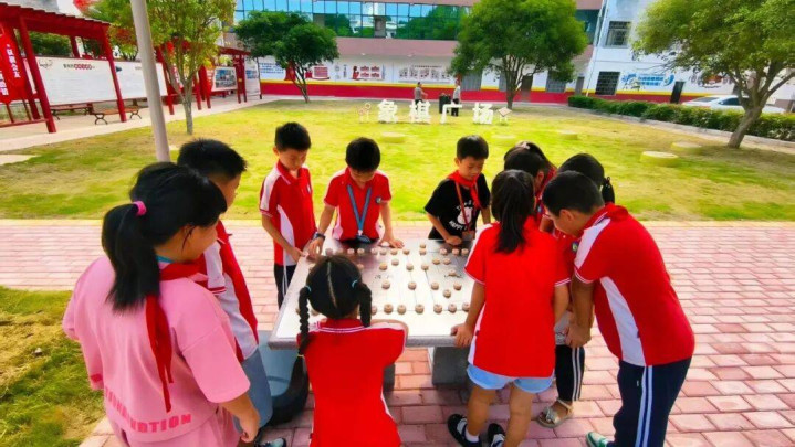 最让人眼前一亮的,当属“红色点位”大型棋盘对弈,棋手每走到标注的格子,就需回答一道红色历史问题才能继续走棋。“走到‘秋收起义纪念馆’时,我回答了‘秋收起义发生在哪一年’,不仅赢了这一步,还学到了历史知识!” 参与对弈的学生说,这种“下棋 + 学历史”的方式,让她觉得“既好玩又有意义”,也让红色精神在趣味互动中悄然传承。