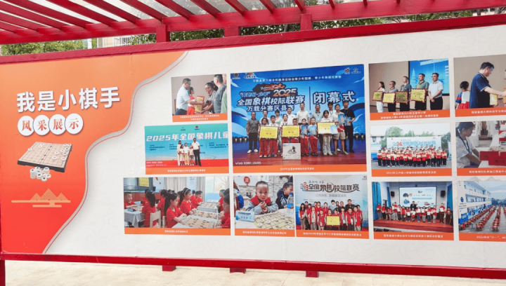 活动现场,象棋文化的魅力在细节中尽显:走进校园象棋广场,“以棋启智、以棋育人” 的理念融入展板设计,不仅用趣味解读阐释 “弃车保帅”“马后炮” 等战术背后的智慧,更展示了学校象棋文化的发展历程、赛事风采与小棋手的成长故事,一幅 “可看、可学、可互动” 的文化图景徐徐展开。